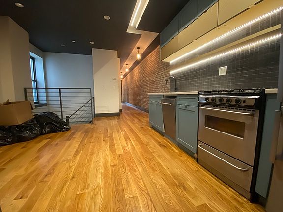These new apartments present an opportunity to rent in one of Brooklyn's most rapidly developing neighborhoods; lovely tree-lined Eastern Parkway, which feeds directly into nearby Prospect Park, the Brooklyn Museum, and Grand Army Plaza, is just a few blocks away. The 3 train at Kingston is down the street, providing easy transportation throughout Brooklyn and Manhattan. This unit is a duplex with three bedrooms and one full bathroom upstairs, and one bedroom and another half bath downstairs.