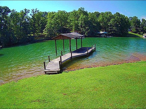 Enjoy this Amazing level property with exceptionally wide views. Located in a quiet cove in the Saunders Point Subdivision and near Mitchell's Marina. This home is in a cul-de-sac surrounded by great neighbors. There is a large covered boat dock, an electric hoist, a separate boat ramp and plenty of deep water. The home is a 4 bedroom with 2 Jack & Jill style full baths. The living room has a large stone fireplace and there is room for a dining table next to the kitchen. Enjoy the view from the screened in rear porch with an additional area to BBQ. This is a great, waterfront vacation home, or a place to build your dream home. Home is Sold ''as is'' and ''Where is'' Inspections are welcome, but for buyers information only.