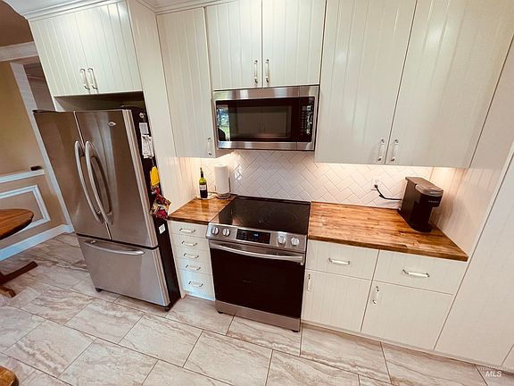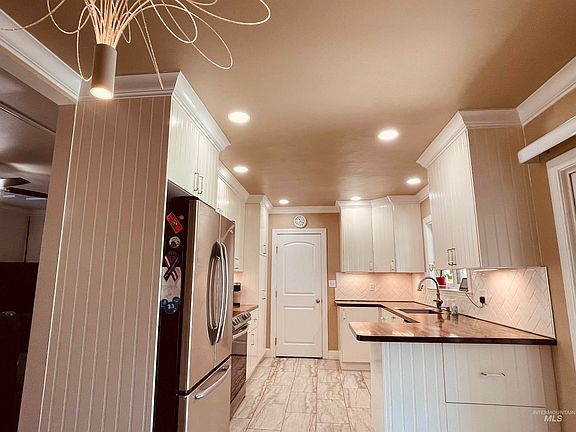 4bd 2bath 2528sqft home on .32 acre lot with underground sprinklers and a irrigation well! Insulated 2 car garage with a pantry. Home has upgraded Andersen windows, new fully remodeled kitchen with IKEA cabinets with butcher block countertops, tile floor and new bathroom with tile shower. New base molding and crown molding with new 3/4 inch solid bamboo flooring. New lighting and ceiling fans in every bedroom. New interior & exterior paint with a 14X40ft covered back concrete patio! Fully fenced backyard with mature shade trees and a large garden area with the possibility of R.V parking. Sitting area with a Gazebo for all your entertaining. Harmon pellet wood stove in the living room, with gas central air and heat. Full rain gutters with leaf guard screens! This is a turn key home with pride of ownership in every detail!
