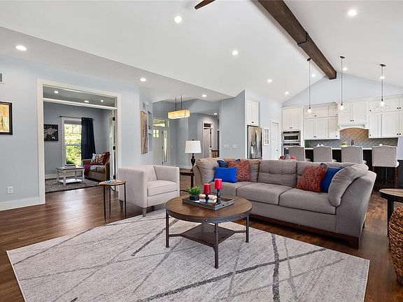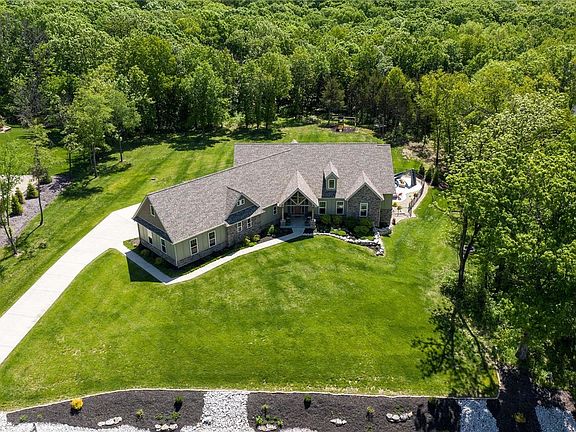 5 bed, 3.5 bath custom built ranch home with nearly 3600 sq. feet of living space, situated on 3 acres with in ground pool. Entry foyer opens to great room with vaulted ceiling & gas fireplace. Kitchen boasts vaulted ceiling, white cabinets with crown molding, tile back splash, center island with breakfast bar, farmhouse sink & stainless steel appliances. Breakfast room has vaulted ceiling, recessed lighting, wall of windows and sliding glass door that opens to covered deck. Master bedroom features bay window, coffered ceiling with recessed lighting, ceiling fan with light & en suite bath. Master bath with double sinks & vanities, separate shower & soaking tub. Bedrooms 2 & 3 have ceiling fan with light & jack and jill bath. Main floor laundry/mud room with built in cabinets & counter top with sink. Half bath located off laundry room. Partially finished walk out lower level has family, rec., 2 bedrooms & full bath. In ground, 10,000 gallon, fiberglass pool with stone waterfall & slide.