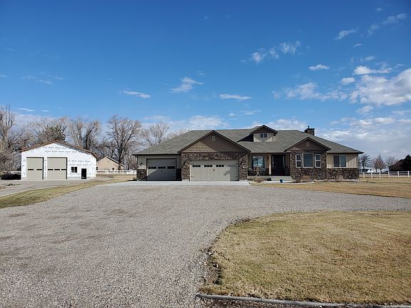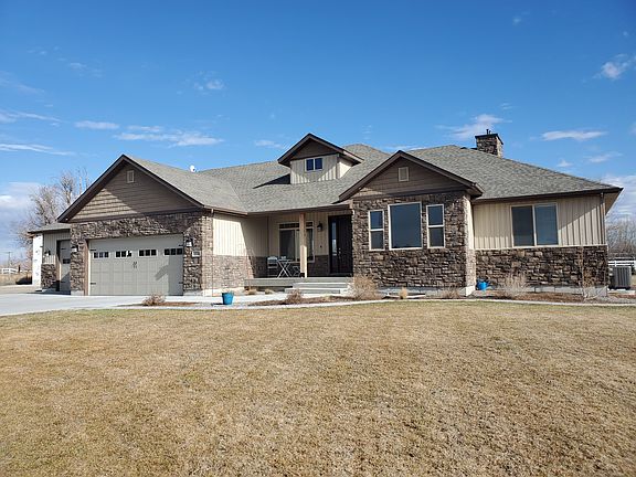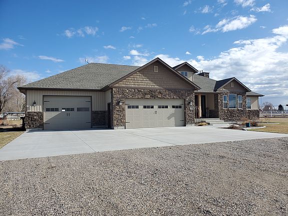 Amazing 6 bedroom 3.5 bath home outside of Blackfoot on 1.5 acres next to the middle school. This home was built in 2017 and has over 4,500 sq. ft. of finished space. There is a huge 40x60 new shop to store your RV and all of your toys and plenty of room on the lot for your animals. This custom home features granite countertops throughout, gas fireplace with stone surround, central vac system, water softener, workout/flex room, open floor plan with tall ceilings, mud room with built-in lockers and huge family room in the basement. The backyard is fully landscaped with auto sprinkler, large covered patio, vinyl fence and greenhouse. Within walking distance to the middle school and park. Great value!