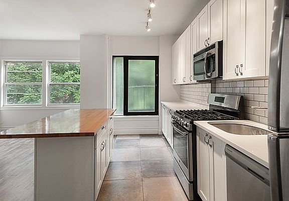Welcome to this exquisite development located on the Concourse. Enjoy this fully updated 3-bedroom, 1-bathroom gem that fits today's modern lifestyle, with its open space and great attention details. Enjoy the fully updated kitchen with stainless steel appliances, grey quartz countertops, and beautiful white cabinetry to match. Custom island with oak wood countertop perfect for entertainment. This lovely apartment offers hardwood flooring throughout the apartment. Updated bathroom match the unit's modern aesthetic. Massive principal bedroom can easily accommodate a king size bedroom set with a closet. Additional bedrooms can comfortably fit a queen size bedroom set and offer great storage. Tons of massive closets throughout the apartment. Everything has been recreated thoughtfully. Convenient location, property is alongside a beautiful local community garden, close to Melrose Metro North train station only 30 minutes to NYC, major highways, Starbucks, casual and fine dining. Heat and Hot Water included in the rent. Income required. Credit over 700 a must. Cats and dogs are welcome with a pet deposit. Please check with listing agent for pet restrictions. Transit/ Subway Melrose Metro North 4, B, D Train Station 161st Yankee Stadium Amenities Security Camera System Pet Friendly Restriction Apply (Pet Deposit Required) Shopping Center Concourse Plaza Parks and Recreation Mullaly Park Joyce Kilmer Park The Bronx Museum of Arts Yankee Stadium Hard Rock Cafe The Dugout Crown Diner Yankee Tavern
