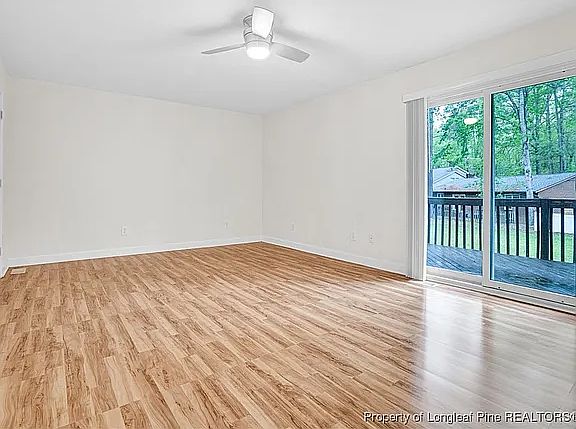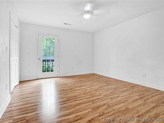 Located in the gated and highly coveted Carolina Trace, this beautifully appointed home blends comfort and elegance in a resort-style setting. The community offers two Robert Trent Jones Sr. golf courses, a 315-acre lake, clubhouse, pool, tennis courts, fitness center, and scenic walking trails. Step inside to vaulted ceilings and four skylights that flood the living room with natural light. Tile flooring flows throughout the first floor, complementing the open-concept layout. The chef's kitchen features stainless steel appliances, granite countertops, and a stylish backsplash that ties everything together beautifully. The primary suite is a true escape, with its own private balcony and a walk-in closet with custom built-ins. All bedrooms are generously sized with great storage options. Outside, enjoy two spacious decks, plus a large yard that offers space to roam. Owner will pay for electrical, water/sewage. Month to month lease optional