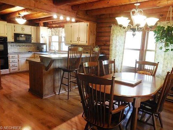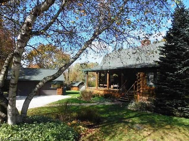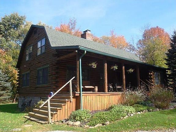 Welcome to 10680 Butternut Road! This Charming Log Home is situated on over three acres of picturesque wooded delight! With A Cape Cod style, this home is unique as can be! Lovingly cared for, this home is warm and cozy! There is a 29x9 covered front porch that is perfect for relaxing and enjoying the views. This home features four bedrooms, with one on the first floor. The large eat-in kitchen is open and a quaint sitting area accompanies this kitchen. As we all know, everyone wants to gather in the kitchen! A breakfast bar completes this area. The living room has brand new carpeting and a fireplace with wood burning insert to keep your heating bills low. Upstairs is an oversized Master Suite with sitting area and plenty of space. Two more bedrooms are upstairs and a full bath. A full basement is also here with another wood burning stove and a workshop. The detached garage is also joined by a nice sized storage shed. This property is beautiful with a stone patio in the back and trails through the woods! Visit today and be wowed!!