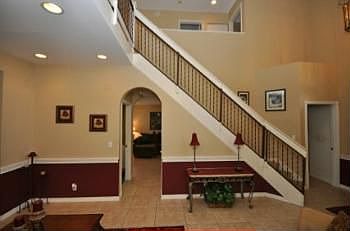 This updated home sit on a cul-de-sac lot with fenced yard with room for pool. 18x18 neutral area in living areas. Updated kitchen with tile countertops and satinless steel appliances. garage converted into a spacious bar area. Can easy convert back. Accordion shutters on 2nd floor. Large master bathroom with separate shower & roman tub. Knock down textured walls. Intercom. Move in condition.