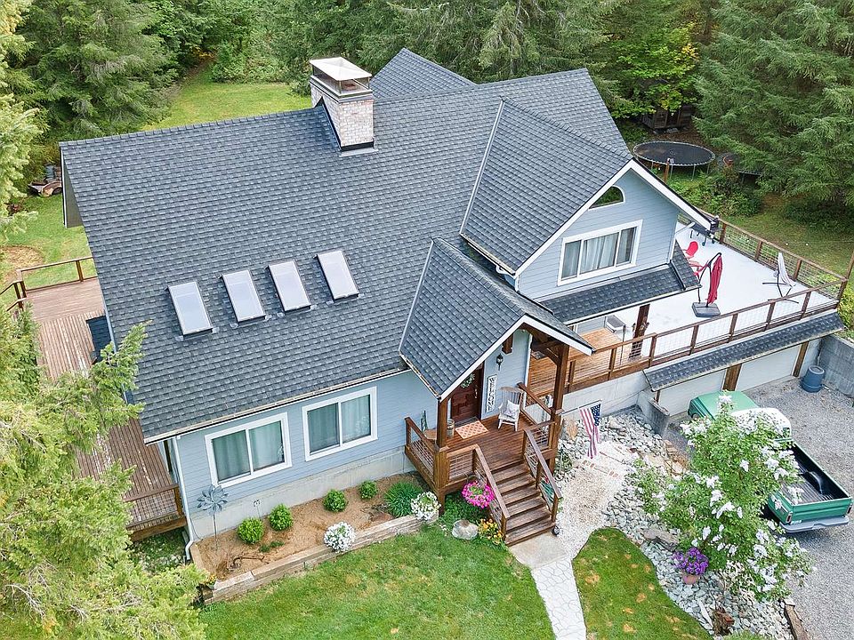 Nature is at your door step with this Beautiful Timber Frame home nestled amongst 4.76 acres of tall timber, trails, privacy & a magnificent view of Sauk Mt! Sophisticated design w/ high end finishes. Updated Kitchen has island seating, pepped up pantry, custom cabinets, quartz counters & SS appliances. Sprawling refinished oak flooring. Impressive wood stove heats whole house & the 7" insulated panels keep home warm or cool. Gorgeous bathrooms w/ view, stocked wood shed, new 50yr comp roof, skylights & gutters. Updated decks & new Fiber rooftop deck overlooks massive backyard w/ enough room for everyone. Partial unfinished basement has additional living space, storage, bonus room or so much more. Close to Baker recreational area, Ross lake, Diablo lake and so much more with natural at your doorstep. We open doors to your NextHome!