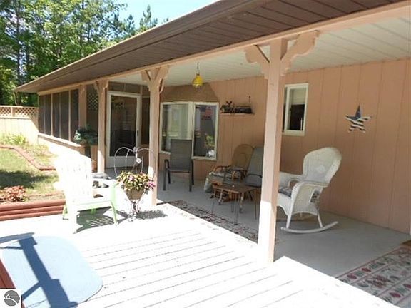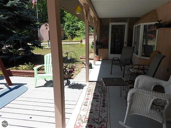 Very Unique earth berm house! Over 6 acres that border state land on the back of the property. Close to snowmobile trails and a hunters paradise! Nice pole barn with 1-car garage. Enjoy your coffee in the three-season room facing your backyard. Very secluded and private, close to Crystal Mountain - golfing skiing, snowboarding. You have to see this home!