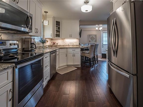 Well maintained home tastefully updated with warm neutral tones. 2017 white kitchen Fabuwood shaker cabinets soft close drawers pantry with pull out shelving Whirlpool SS Stove, Microwave & DW, granite countertops that flow beautifully into peninsula. Cathedral ceiling in the breakfast area. DR has French doors with two sidelight windows. Cove ceiling in the LR and hallway. Marble window sills, crown molding, plaster walls. Charleston hand scraped hardwood floors kitchen, breakfast area and DR. 2016 carpet installed with hardwood floors underneath. Closets have six panel doors, custom window treatments. Lift Master garage with keyless entry. Light sensor lamp post in the gorgeous front yard. Covered rear concrete patio with beautiful landscaping and greenery white vinyl privacy fence. 2016 new control panel for furnace. 2018 new hot water and expansion tank. 200 amp service. 2011 roof and awnings. Guardian hardwired home security system.
