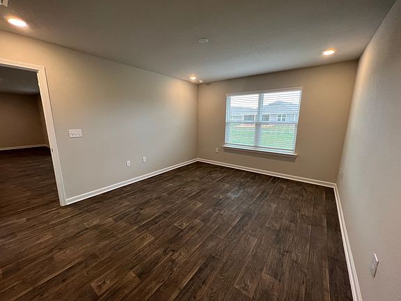 4 bedrooms, 2 bath open floor plan home in Jubilee Farms with luxury sheet vinyl flooring throughout. NO CARPET. Granite countertops in the kitchen and baths. Kitchen features island and stainless-steel appliances including refrigerator, microwave, dishwasher, and oven/stove. Large primary with a large walk-in closet, stand-alone shower, garden tub, and double vanity. Large laundry room with washer and dryer hookups. Double garage. Covered Patio. Pets negotiable with owner approval. Max 2 pets. $300 pet deposit per pet. Community AMENITIES include: Clubhouse-Exercise - Fitness, Playground, Adult Only Pool, Walking - Nature Trails, 6700 sq ft, Resort-Style, Zero Entry Pool with 20' Water Slide, Splash Pad, Scenic Lakes/Fishing.