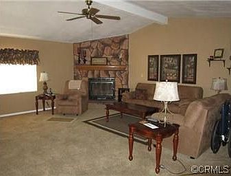 This is a very large 3 bedroom and 2 bath triple wide. Features include a huge living room with fireplace. Kitchen and family room/dinning room combination, separate laundry room, scrapped ceilings, freshly painted and newer carpet. This home is located on the largest space and steps from the clubhouse pool and recreation area. Very low association fees of approximately $694. This is a senior community and you must be 55+