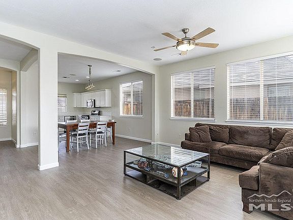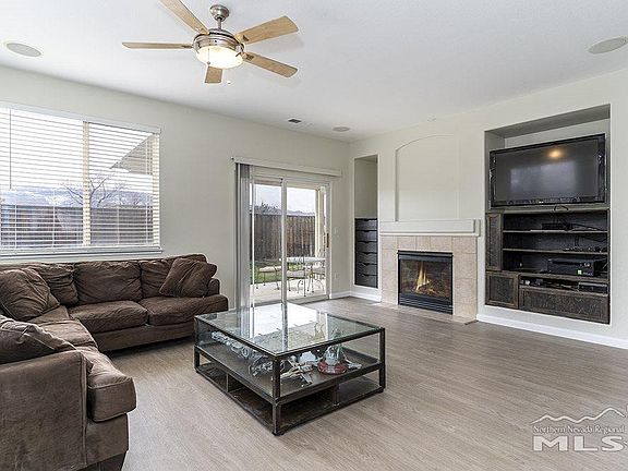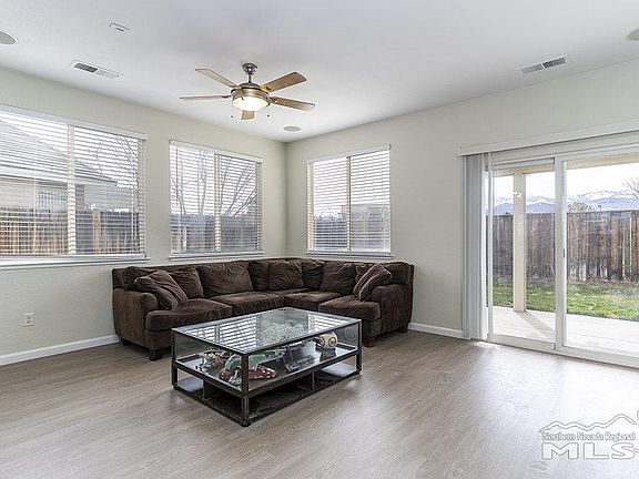 Premier lot location with views of Mt. Rose! This home has a great room design with brand new laminate flooring and carpet, along with fresh interior paint. The kitchen has stainless steel appliances, gas range oven and plenty of cabinet space. The family room has a built-in entertainment system, surround speakers and gas fireplace. The master bedroom has a walk-in closet and slider door to the backyard. Enjoy the views of the mountain range under the attached metal pergola with exterior speakers.