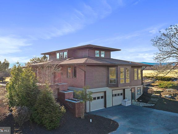 This unique, secluded/private, contemporary house located on 6.77 acres was designed by architect Lea Allen of Frederick. Frank Lloyd Wright prairie design, 2 seasonal streams & beautiful mountain and rolling farmland views. Private high walled garden with pond & waterfall. Custom cabinets, stained glass, built-ins, granite, & much more...Large First Floor Bedroom Suite with amazing bath w/large walkin shower & laundry area, walkin large closet! Additional laundry area on lower level...Private entrance lane, minutes from Whitetail Ski Resort, Mercersburg Academy & Historic Mercersburg. Two hours from DC & Baltimore.