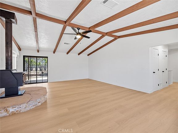 Beautifully renovated West Oak Hills home sitting on a large, private lot! This 1,630 +/- square foot home has been renewed from top to bottom and offers 3 bedrooms and 2 baths. Inside the home you're welcomed by a fresh and modern living space. The living room greets you with new laminate vinyl flooring and beamed cathedral ceilings and a wood burning fireplace with a new rock hearth. The kitchen has been completely redone with freshly painted cabinets, new quartz counters, new custom tile backsplash, new stainless steel appliances and new recessed lighting. The bedrooms have new carpet, baseboards, and ceiling fans. The hall bath features a new vanity with quartz countertop, new flooring and fixtures. The primary bedroom has its own sliding glass door to the back patio as well as a walk-in closet and the primary bathroom that has a long vanity counter and a separate tub and shower. The garage is an oversized 2 car garage creating space for a workshop area and has been finished with drywall and has been freshly painted on the interior as well. Outside the home has new exterior paint, new roof and a new garage door. There is a concrete walkway around the entire home and the back of the home has a covered patio on the south side of the home that runs the length of the home. The property is 2.2 acres and is completely fenced and has mature nature desert Chaparrel that creates an immense amount of privacy on this property. Property is zoned for horses and has quick access to the 15 freeway corridor and local city shopping. Lastly, the vacant parcel immediately south of the home is also separately listed for sale and can be additionally purchased creating more space of an opportunity to build a neighboring residence.