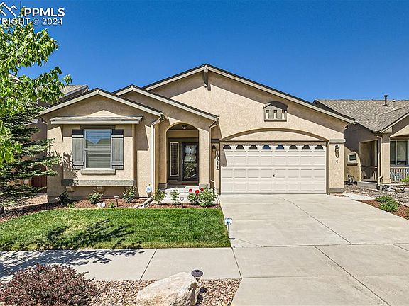 Perfect D-20 Rancher with unobstructed views of the Pikes Peak and no one behind you! Walking distance to Pine Creek High School! Come see this open layout with a walk out basement and spacious back yard, fully fenced, landscaped and ready to go! Well maintained, brand new fridge, spacious garage, granite counters, freshly cleaned carpets, gourmet kitchen, 2 bedrooms on the main (or a bedroom and office if preferable) and so much more. Get in now for the D-20 school year starting in August! Unbelievable and expansive views of the entire Front Range with no one directly behind you! Compare us to others in North Fork with the same view!