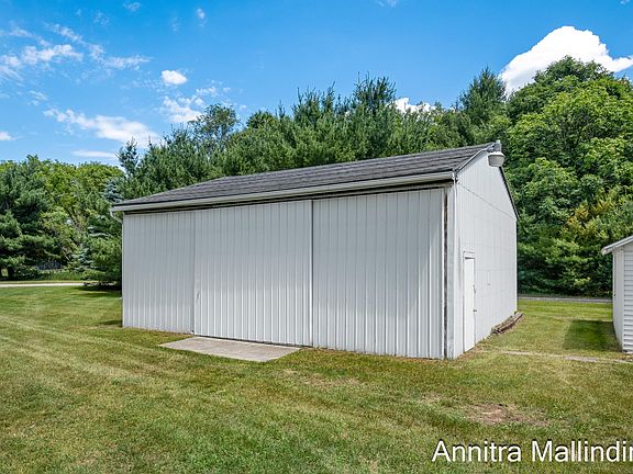 Very nice Ranch on almost an acre lot in award winning Rockford School District with 23x21 garage and 30x40 pole barn. The home features kitchen with plenty of cabinets, bar seating, open to dining area and living room, sliders to covered back deck perfect for summer grilling and entertaining, 3 spacious bedrooms with large deep closets including the master with an ensuite half bath, custom built-ins throughout, main-floor laundry (previously downstairs). Replacement windows, furnace, central air and electric new in 2018, asphalt drive resurfaced 2023, new well pump 2024. The garage and pole barn are set up with 220 electric. Great location, 4 minutes to US-131, close to White Pine Trail, boat launch into the Rouge River, shopping, restaurants and entertainment. Offers due 06/30 at 1pm