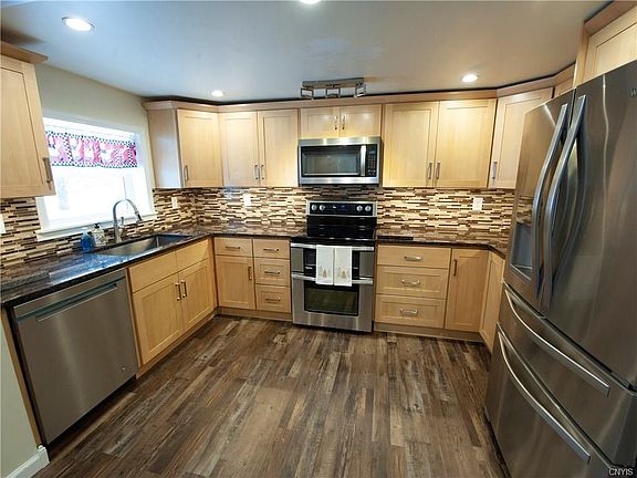 Peace and tranquility located less than 10 minutes from North Utica. This 2 story Trenton home with Holland Patent Schools has been totally updated throughout. Everything has been gutted to the studs, with the focus on an Open Concept Floor Plan. New new new! New roof, new siding, new windows, new kitchen with granite and stainless appliances, new baths, & new flooring. Gleaming hardwoods!! New furnace, new Central Air, new electrical panel with new wiring throughout. Property has a park like setting with a beautiful view of a local pond. New 4 car stone driveway, with a detached garage featuring a sliding garage door big enough for a car and all your toys...Contact agent for a detailed list of many upgrades..Truly a must see! Move in Condition, you don't have to do a thing.