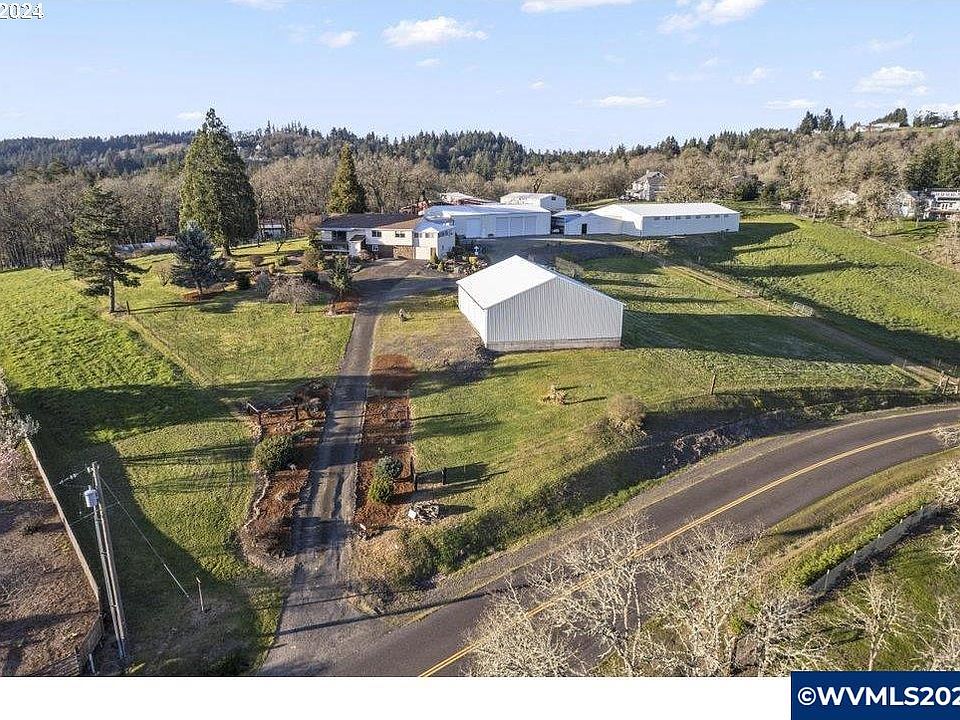 Come see the latest updates! New kitchen appliances! Designed for a car buff with room to store 50 vehicles. This expansive 5+ acre property w/ 3+ Huge fully finished shops can fit big rigs and Rv's, with 7 roll up doors.60 x 120 Covered arena, 6 stall barn, hay barn, tack room, and 2 loafing stalls, on 5.07 acres. Picture perfect mountain views. Walking paths and horse riding trails in the community including private lake access. Excellent location, halfway between Eugene and Portland. Custom home designed for Auto Enthusiast or home business. Value added potential include using 3 shops for rental income, or add solar farm in big fields. Restore vehicles with covered parking for up to 50 vehicles. Tall bays designed for RV or big rigs throughout! Home perfect for multi-generational living situation or house hacking! Big price drop is not for fault of home, seller is Motivated, come see the updates since originally listed! Views of Territorial, mountain, forest, vineyard & Game reserve Custom Classic Car gifted to buyer with accepted offer, 1960's El Camino, fully restored. Flyer attached. Newer roof in '23, New AC, New paint inside and out, new carpet in living room. Brick hearth in living room and family room, ready for new insert. Formal dining room with Walnut built-ins. Spacious Country kitchen with Garden window overlooking landscaped garden filled with wildlife. Vintage reproduction "Elmira" wood cooking stove included. Wall oven, dishwasher, double sinks. Island with eating bar, cook top, and giant pantry with freezer. Primary on main with walk in closet, en-suite, and extra closets, slider to deck. Bonus room- on main could be 4th bedroom or office/gym features sauna. "Catio" area on deck off bonus room, covered BbQ'ing area. Lower level, off garage has woodworking shop & big storage room- ready to be converted into a wine cellar, family room w/ custom pool table and vintage tile wet bar. Lower level kitchenette ideal for canning area, or quilter's paradise. So much storage! Extra built-ins throughout. Covered RV storage or hay barn, RV dump, Greenhouse, fenced coop. Shops have power, air, lighting and was used to restore vintage cars. Too much to list, this one is a must see. Check listing for flyers, blue prints, & More! Watch the video tours! At dusk, watch deer come to gather in the pastures.