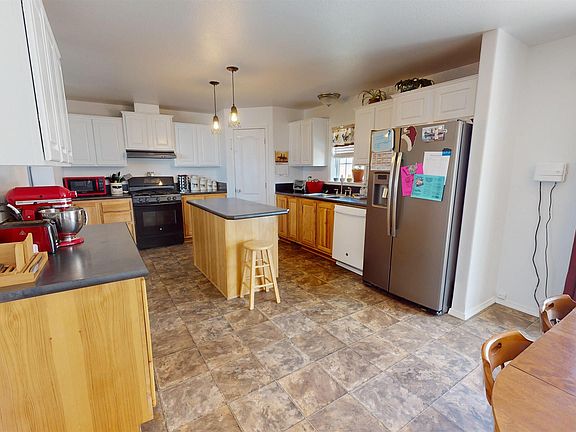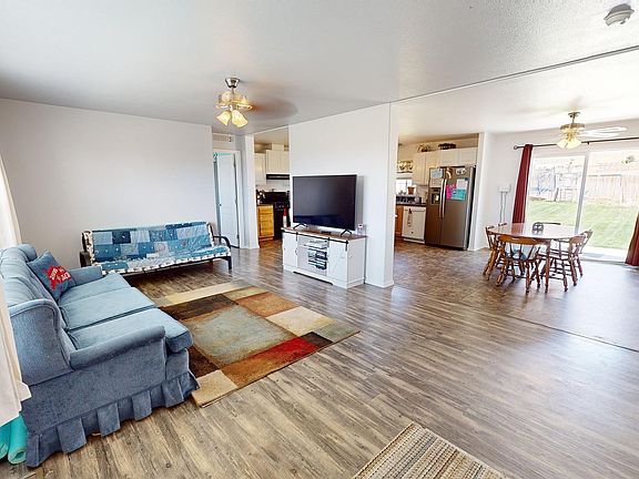 Beautiful spacious modern home that features 4 bedrooms, 2 bathrooms, a mud room with a substantial storage room, and an extra living room in the back. As you walk in the front door you are greeted with the main living room, that connects to the very roomy kitchen, that has all the cabinets you can dream of and an island in the middle. The master bedroom has a standard closet and a sizable bathroom with a shower stall and garden tub., The 3 guest bedrooms are located down the hall on the opposite side of the main bedroom. The hallway opens up at the bedroom doors for a less crowded walkway. At the end of the hall way there is a second living room that is being utilized as a work out area. This additional room has so much space for activities. Within the 2.5 acres there is a fenced off grassy backyard, and a cozy grass lawn in the front. Must see property with must see views.