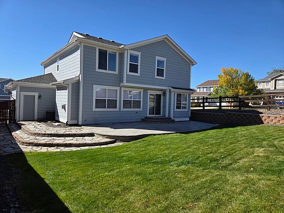 Magnificent 3BDR, 3 Bath home. With vaulted ceiling in a very spacious formal living/ dining room. Freshly painted home with new laminate floors installed throughout. Cozy up to the fireplace located in the family room during the chilly Colorado winters or enjoy grilling on spacious backyard patio during the summer months. Enter into the double doored primary that includes a walk-in closet and 5piece bath. Kitchen includes stainless appliances and quartz countertops. Washer and dryer, located upstairs. Central heat and air. Located in the great family friendly neighborhood of Buffalo Run Mesa. Corner lot with 3car garage. Includes a full unfinished basement which provides lots of storage. Very close to lots of restaurants, King Soopers located at the closest cross- street. Neighborhood does include a community pool to enjoy during the hot summer months. 15 min drive to DIA and 30 min drive to Downtown Denver.