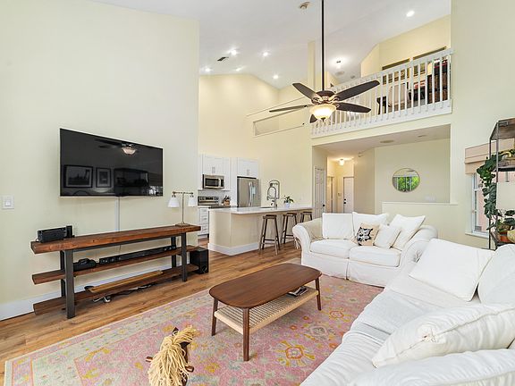 Step into the comfort of this gorgeous, updated and spacious 3 bedroom, 2.5 bathroom, 1-car garage LAKEFRONT home in an A-rated elementary and middle school zone! Amazing vaulted ceilings and recessed lights make the home feel bright and airy. There is beautiful LVP on the ground level and luxury laminate flooring on the stairway and second floor. The remodeled, open-concept kitchen is equipped with stunning quartz countertops, stainless steel appliances, plenty of white shaker cabinets, pantry, breakfast nook and access to the patio. The spacious primary bedroom is located on the ground level. It is finished with tasteful chair railing, walk-in closet and en-suite bathroom with dual quartz sinks, separate shower and tub. One of the guest bedrooms upstairs has a walk-in closet. The open loft upstairs can serve as a great flex space. Enjoy a serene oasis on the screened-in covered patio facing the beautiful lake. Wellington Edge is a fantastic community offering its residents three pools, fitness center, tennis courts, billiards, basketball court and a playground. It is conveniently located to grocery stores and shopping plazas. All measurements are approximate. Take a look at the 3D virtual walk-through.