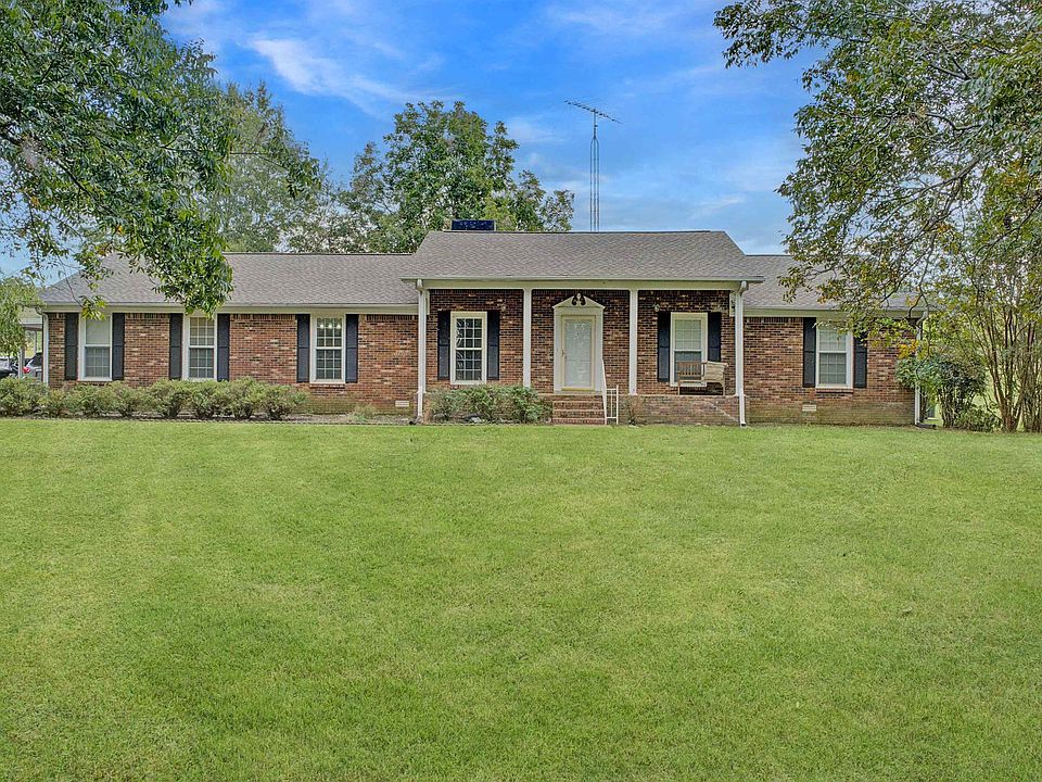 Beautiful Brick Home sitting on 11 ac w/4 fenced acres, perfect for farm animals. Land also has a stocked pond & pecan trees & pear trees. Detached workshop for a "Man Cave"/"She Shed" w/lots of covered parking for lawn equipment. Great room has a fireplace w/gas logs. Living Room/Dining area covers 26 ft across front of Home. Other features include double vanity in Master bath, lg 20x7 utility room & 12x12 sunroom w/patio & an extra covered patio area beside garage. Blue shed does not stay
