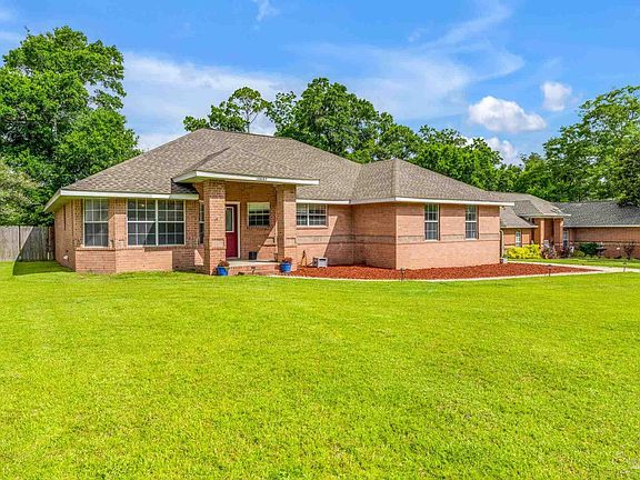 This magnificent home in a WATERFRONT Community can be yours. The location couldn't be better - just minutes from the boat launch& Pensacola & the Beaches. This All Brick home is beautifully landscaped & sits on a Large Lot. There are 3 bedrooms & 2 Baths herein a split plan. As you enter the home, you will notice the open concept, extra large Chef's Kitchen which boasts Stainless Steel Appliances & a center Island. The Breakfast Nook would easily accommodate a Large Table & is open to the Gorgeous Great Room via a half wall. The Great Room has High Ceilings & a Cozy Fireplace & doors that lead to the Large Entertainment Deck. There is a also a formal Dining Room that could be used as an Office. The Primary Bedroom is a Quiet Oasis with high ceilings & natural light streaming in thru the windows. On the opposite side of the home, there are two additional bedrooms with a full bath & large closets. If you LOVE the outdoors, don't miss the HUGE Entertaining Deck out back & the expansive lot which reaches far beyond the back fence. There are also two Storage Buildings here for all your outdoor toys & lawn equipment. There is also a LARGE Two Car Garage here that is Side Entry! Bedrooms have NEW CARPET, and there is a newer Roof here also. Also, don't miss the new HVAC that was recently updated!!This home is in Elberta's top ranked school district. Come see this perfect coastal location & this lovely home! Buyer to verify all information during due diligence.
