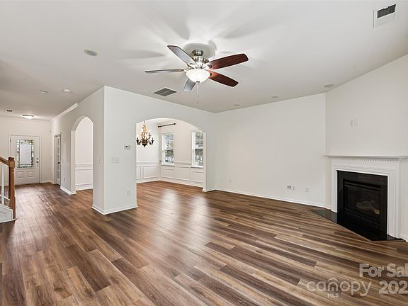 Welcome to 10687 Sapphire Trail. Step onto the covered front porch for those "rocking chair" moments as it greets you. Easy to maintain luxury vinyl plank flooring throughout main; French doors offer quiet moments for your home office off the entry. Formal dining; family room w/gas fireplace; lots of natural light; working kitchen off family room keeps everyone together along with the powder room just off the kitchen and 2-car garage. On the upper level find the laundry room; spacious loft area, three guest bedrooms a full bath and the large primary suite! Again, natural light shines through on this level as well! Professionally painted in neutral colors; professionally cleaned and ready for you to make it your own. Patio off kitchen leads to a large, backyard with garden and tree lined back drop. This home is ready for you to put your stamp on it! What makes it your own? I'd love to see! Just minutes to Interstate 85 and I-485. Shopping, dining and recreation are just minutes away!