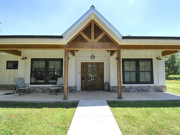 Gorgeous 3 bed, 2 bath new built home on 7.5 acres in the country near Muldrow in the Maple community. Open floor plan, quartz countertops, 2 hot water heaters, new appliances including a smart refrigerator with light up window. The HVAC is a high efficiency, top of the line Trane heat pump! Electric bills only run apprx $120 per month. Spray foam insulation. 1200 sq ft of carport and porches. 2 car attached carport and a 10x20 storage shed. 50 amp RV hookup. A must see. Motivated seller!