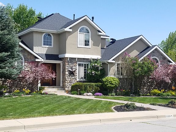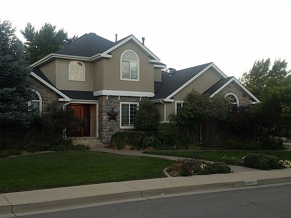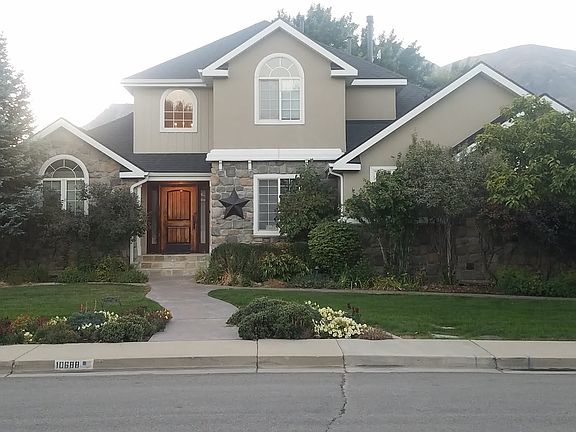 Beautiful view of the mountains from private back yard. In-ground hot tub! Waterfall, plum trees, 4 garden boxes. Basketball/sports court with large court light. Quiet neighborhood. Solar Panels and new roof with 50 year warranty. 3 car garage, dog kennel and doggy door in garage. Soft water system. The home is set up to have central vac though there isn't currently one in the home. Large Laundry/mud room with tons of storage lockers, drawers, cupboards, pull down hanger rods. Kitchen and dining area has wonderful big windows for natural light, large island with hanging bar stools, lots of storage, sturdy shelves in pantry, new dishwasher, 5 burner gas stove top, warming drawer, two ovens and microwave. Great room with fireplace, Master Bedroom with bay window on the main floor. Double sinks and jetted tub in the Master Bath, his and her closets. Beautiful entryway with sitting room. Spacious half bath on main level. Upper level has 3 bedrooms, full bath, large storage area over garage. Closets have sturdy shelves & rods. Built in window seat and book shelves in one room. Basement is large and open with large storage room with strong shelves, exercise room with nice fan and great floor. Craft room, kitchen area with dishwasher, heated floors, space for microwave and fridge. Two bedrooms have built in desks and shelves. Large windows for lots of light. Full bathroom. Built in shelves in office/game room space and built in entertainment center. Cute toy room under stairs. (Newly replaced in home: water heater, air conditioner/heater, dishwasher, microwave, roof.)