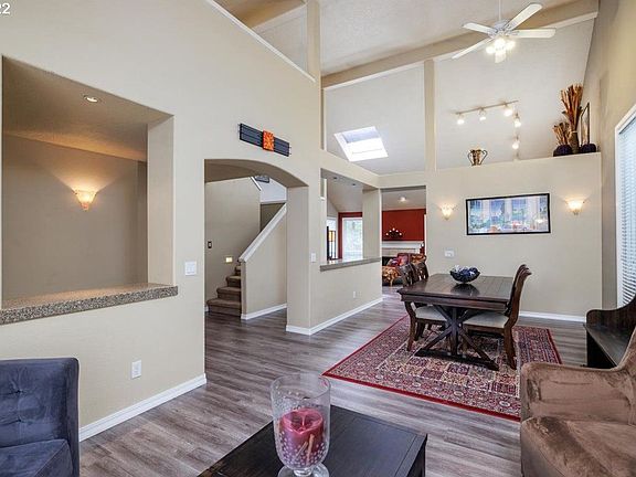 Love this floor plan! Open beams with tall ceilings and skylights to bring the sunshine in. Main level Primary suite w/full bath and soaker tub. Kitchen open to family room and nearby dining area. Lovely living area with vaults. Loft office upstairs with 2 bedrooms and full bathroom. Fenced in finished back yard. Sought after neighborhood close distance to Cook Park, schools and shopping.