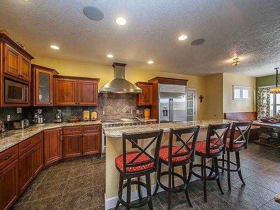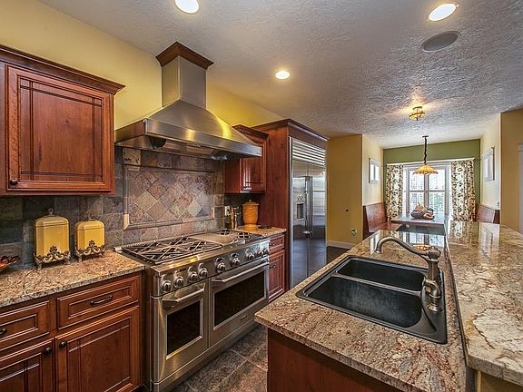 Custom executive home on 1/2 acre in quiet country setting. Dream kitchen w/professional appliances & built-in booth that seats 12+. Cozy family room w/wood burning fireplace. Master suite is spacious w/closet for a queen & private deck! Spa like master bath w/slate walk-in tiled shower & jetted tub. Bonus room has custom wood ceilings & wet bar. Plantation shutters, central vac, hardiplank siding & stone chimney. Oversized garage w/ RV parking. Wrap around porch, HUGE organic raised garden, fruit trees.