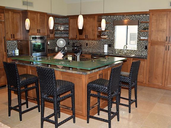 For more information on this property, contact the Listing Agent, Mary F. Bell at (520) 918-5222 or Mary@TucsonHomePro.com. Beautifully updated 5 BR/4BA home in Canada Hills! This is one of the nicest homes you'll find in the subdivision. Totally upgraded home features: 24'' tile in kitchen & family room; new kitchen w/granite countertops, glass tile backsplash & glass top bkfst br, new cabinetry, wood front frig, SS Kitchen Aid appliances (including double ovens), under-counter microwave oven, over-sized storage drawers in lower cabinets...and that's just a portion of the kitchen features. In addition, a slate-front fireplace in the family rm, breakfast nook that overlooks the patio, pool, golf course; DOUBLE master bedrooms (1 up/1 down); fantastic built in storage in the laundry room & 3-car garage; all baths redone w/new cabinetry, fixtures, sinks...the list goes on. SEE this house to appreciate it.