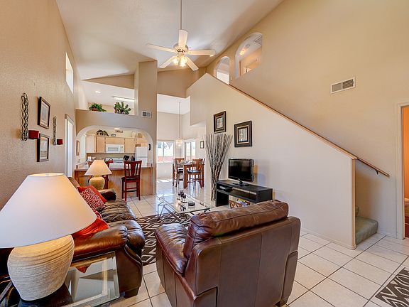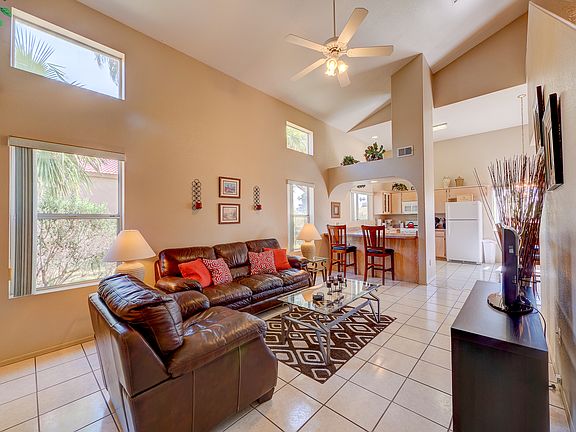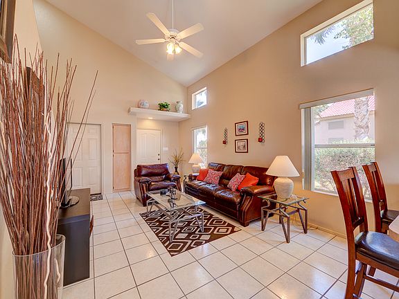 IMMACULATE GOLF COURSE HOME WITH AMAZING VIEWS & FULLY FURNISHED! This 3 bed 2.5 bath town home features unique builder designs including vaulted ceilings, plant ledges & arches. Kitchen has a stunning view of the mountains, golf course, & upgraded landscaping, complete with new appliances. Outdoors, enjoy your private patio, & the heated community pool & spa for year-round enjoyment. The over sized garage can accommodate a larger truck. This home is a must-see, you won't be able to find another like it!