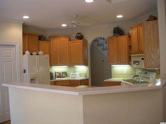 Wonderful all brick two story home on the 16th fairway of the gated community of the River Club. The great room offers a vaulted ceiling and gas fireplace and opens to the Carolina room. The formal dining room has a vaulted ceiling and a palladium window. Spacious eat in kitchen is opened to the great room with solid surface countertops, a large walk in pantry and hardwood floors. The spacious master has a tray ceiling. The master bath offers 2 separate vanities with updated faucets and fixtures, a large walk in marble shower, a whirlpool tub and an amazing large walk in closet. New roof August 2013. Upstairs has two bedrooms with a jack and jill bath plus a bonus room with an extra storage room. Spacious garage with built in cabinets. Sit on the back deck and watch the golfers go by. Private beach access at Litchfield by the Sea. Low POA fees. Don't miss this one!