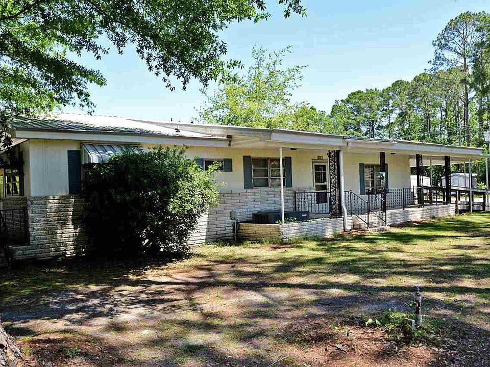 Four bedroom, 2.5 bathroom home on a foundation on a huge .86/acre lot (originally 3 lots). Large detached fish house/outbuilding/workshop with electric and plumbing. This double wide mobile home has a permanent addition attached and includes a den, fireplace, Carolina room. The foundation has been upgraded with straps and braces. Double car port and lots of porches. If you need lots of space inside and outside, want a place a in a great area just a few miles to the beach at an affordable price, check it out!