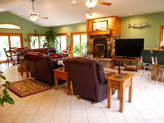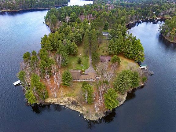 Paradise Point! This 3 BR, 2.5 BA home sits at the confluence of the Eagle River and Wisconsin River. Your own peninsula on Watersmeet Lake offers 4.28 acres, dividable into 2 parcels, and 1273' of frontage on the Eagle River Chain. The lot is level, faces west for spectacular sunsets, and has 2 piers (one covered) & underground sprinkler system. There is a 3 car detached garage & a paved private drive. Inside, the kitchen has been finished with new ceramic tile and new granite countertops. There is a high efficiency wood burning fireplace in the 36' x 24' great room which is perfect for entertaining. The master bedroom is 20' x 19' and offers a master bath and large walk-in closet. There are two additional bedrooms and 1.5 baths and a large laundry area. The hydronic heat will keep you warm all winter. The home is air conditioned too. There are windows all around and all have a view of the water! A truly stunning home in a terrific location! The best privacy on the Chain!