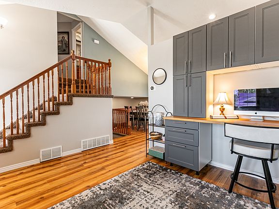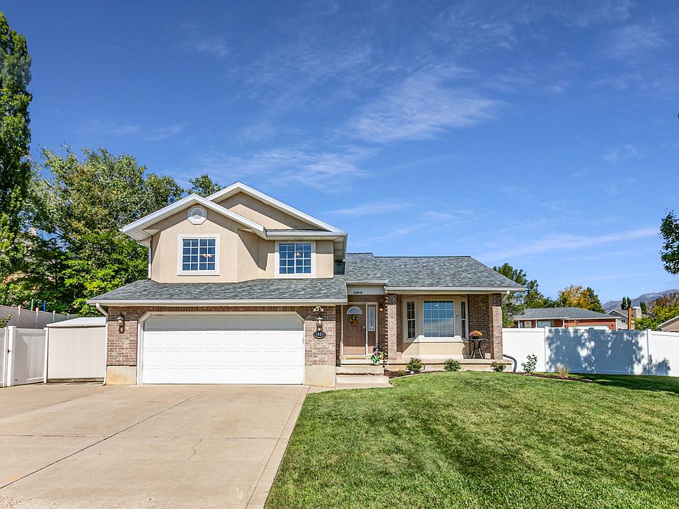 Welcome to this charming multi-level home featuring 4 bedrooms and 2.5 bathrooms, perfect for comfortable family living. The thoughtfully designed layout creates a main level with multiple spaces for gathering or relaxing while open to the kitchen and dining area. A bottom level bedroom sits next to a den that can be used as a workout room, game room, or library - create a space that works for you. Master bath has a garden tub with jets. Outback the private patio creates a beautiful space for entertaining or enjoying time in nature. An enclosed garden area sits on the east side of the home and a playground, trampoline, and fully fenced yard give a lot of space for children and pets. This home offers the perfect mix of indoor and outdoor living spaces ready for peaceful retreats, curling up with a good book, or hosting a summer barbeque. Seller is offering a $4000 carpet allowance so you can start with your choice of fresh carpet in your new home. A home warranty will also be provided for buyer's peace of mind, and the Ring camera and full security system, including 4 outdoor cameras is included.
