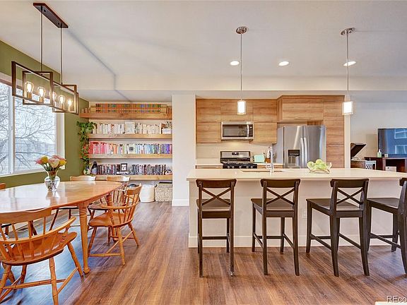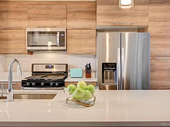 Welcome to this stunning townhome in West Line Village. The spacious floorplan unfolds across three levels and 1,500 square feet of thoughtful design. On the main level, you’ll find a bedroom and private patio accompanied by a three-quarter bath. The perfect setup for your home office, overnight guests, or generating Airbnb income. Head upstairs and you’re welcomed into a wide-open layout. You’ll notice the gorgeous hardwood floors, expansive mountain views, and gorgeous natural light from large windows. In the kitchen, you’ll love the large island and upgraded finishes, including quartz counters, a gas range, and stainless steel appliances. Built-in bookshelves add architectural detail while updated light fixtures add warmth and character. You can even enjoy your morning coffee or an evening glass of wine out on the balcony. On the top level, you can relax in one of two primary bedrooms, both with walk-in closets and luxe finishes. Rounding out this home is an oversized garage and off-street parking in front, a rare find! This street in particular also offers easy street parking for your visitors. You’ll love living in this close-knit community where you can join in on neighborhood activities like a chili cookoff or book club. Located right on the light rail W Line, the Sheridan stop is moments from your front door. Head to Red Rocks in Golden or make your way to downtown Denver in just 15 minutes. You’re also close to the shops and restaurants at Belmar, as well as Sloan’s Lake and Edgewater. Nearby Lakewood Gulch provides miles of trails to explore, or head to nearby 6th Avenue and you’ll be in the mountains in no time. Beautiful home, convenient location—this one has it all!