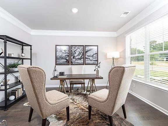 DIRECTION: NORTH TO HWY 316...Right on CEDAR RD...Continue on RACK HOUSE ROAD... Right On Alcovy Road... Community Alcovy Village on the Left. Rockhaven Homes presents: THE LEIGHTON! This stunning home features 5 Bedroom/4 Full Bathrooms, 3 Sides brick, with covered rear Patio, Media Room, Gourmet Kitchen with Double Wall Mount Ovens, Huge Master Closet with dual windows. FULL UNFINISHED DAYLIGHT BASEMENT. This magnificent brick home offers luxurious features and thoughtful design elements, perfect for comfortable and stylish living. Upon entry, you are greeted by a guest bedroom and a full bathroom on the main level, providing convenience and privacy for multigenerational living arrangements. The layout includes formal separate living and dining rooms, ideal for hosting gatherings or enjoying intimate dinners. At the heart of the home is a spacious family room featuring a sleek floating fireplace that adds warmth and ambiance to the space. The beautiful gourmet kitchen is equipped with 42" cabinets with crown moldings, granite countertops, and a large kitchen island, offering ample workspace for meal preparation and entertaining. On the upper level, you'll discover a haven of relaxation and entertainment in the media room, a cozy retreat perfect for movie nights. The highlight of the upper level is the expansive owner's suite with 9-foot vaulted ceilings and huge walk-in closets with dual windows, providing abundant storage space for your wardrobe essentials. The master bathroom features a tiled spa shower and a separate tub for ultimate relaxation. 3 SIDED BRICK HOMES