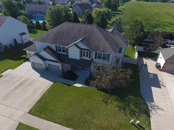 Priced To Sell ~ Custom 4 bedroom, 3.5 bath, finished basement. Beautiful crown molding and quality 8" baseboards. Family room two level ceiling complimented by a floor to ceiling stone fireplace, two story windows and upper level catwalk. Granite kitchen and granite baths. Open kitchen (dishwasher, fridge '17), breakfast nook, formal dining, and a main level office and den, main floor laundry too! Large master suite with hand scraped hardwood flooring, a walk-in closet, an open dressing room w/a custom built-in lighted bureau, a bonus closet and en suite. All bedrooms offer generous walk-in closets. Basement family rm and bonus space with hand scraped hardwood floors - a rec room opportunity, exercise room has vinyl work out flooring under loose carpeting, bath, and a basement staircase to the heated garage with newer carriage style garage doors, each basin offers a floor drain. Dimensional exterior garage design, fenced yard, Maroa-Forsyth Schools! Welcome Home!