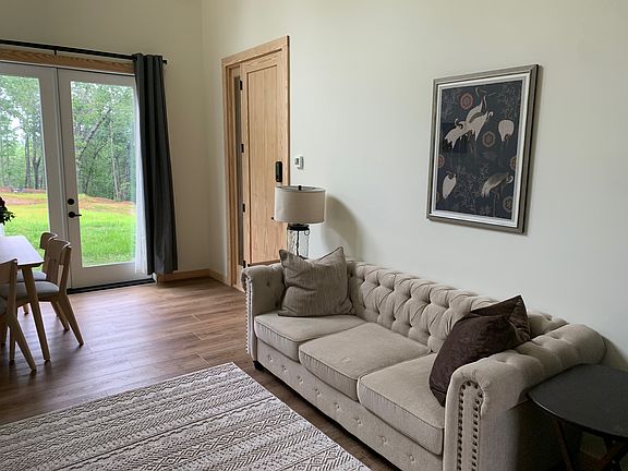 Fully furnished, all utilities included. This is an LTR - 30+ day rental only. Rent as advertised reflects 1 year lease. Enquire about shorter lease terms. Live where others come to vacation. Peaceful, private, and spacious apartment in new mountain forest home. Perfect for a couple building their dream home in the North Georgia Mountains or for the remote professional looking for a private space to work and play. Fully furnished, fiber WiFi, all utilities included. 1 mile from Carter's Lake, 15 minutes from downtown Ellijay and shopping. The apartment was specifically design to be a separate, private space. That means, even thought it's part of a single building, you'll have 100% privacy. Unlike dark, basement apartments or spaces "forced" to become a rental, this space is very very bright as it faces east / west and showers the interior with bright natural light throughout the day. Two parking spots are dedicated to the apartment, as well as unmitigated use of the outdoor space. The grounds are green, forested, with trails connecting to the property that lead to streams and the Coosawatte river. For more outdoor adventures, you can take a walk to the Carters Lake boat launch and nearby Tumbling Waters Trail. Note: This is a brand new home. The owner is diligently improving the property with additions to landscaping, outdoor spaces, decks, and fire pits. The longer you stay, the better it gets. This is an LTR - 30+ day rental only. The advertised rent reflects a one-year lease. If you are interested in a shorter stay than 1 year, let us know. We understand how difficult finding a place in the area is and how some folks don't want to be locked in to a long term lease, but don't want to spend a fortune on STR's. Maximum occupancy 2 adults LTR - min. 31-day lease All utilities included Renter responsible for trash removal No smoking or smokers No drugs use Quiet hours after 10:00 PM