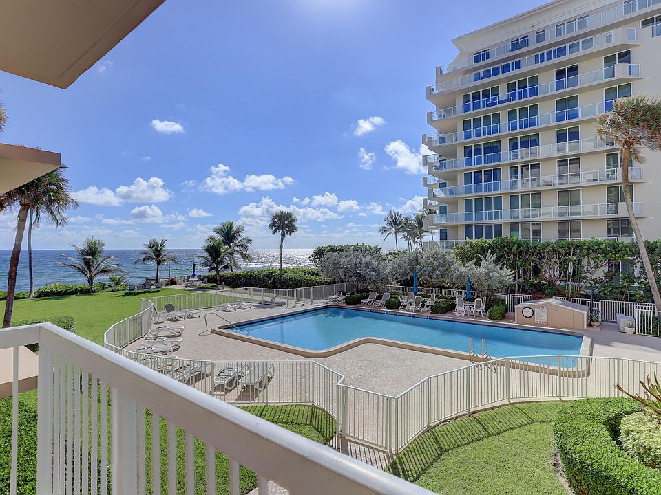 Live the Florida lifestyle you have dreamed of. This fabulous boutique building is located in Hillsboro Beach on the world renowned, ''Hillsboro Mile''. Home to some of South Florida's most expensive homes. Perfectly situated 2nd floor location offers resort style pool views and wide ocean vistas...enjoy sunrises every morning. Open concept kitchen and living areas. Upgraded ceramic tile throughout. Tastefully updated kitchen features wood cabinetry, granite counters and pantry. Spacious master bedroom suite includes separate vanity area, 2 closets & beautiful views. Guest bedroom is a great extra space..office..den..bedroom with the murphy bed ready to go. Walk or bike to the Hillsboro Inlet, see the Lighthouse. 5 mins north is Deerfield Beach Pier full of restaurants and shops.