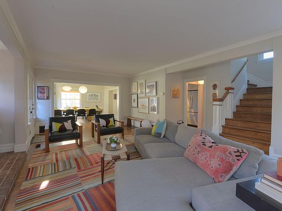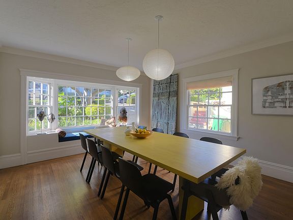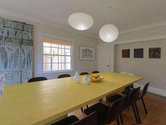 Available for short term rental for up to five weeks, June 1- July 7, 2022. Furnished 3 bedroom, 2 bath, 2100 sq ft home. Sunny, spacious and stylish on one of Crocker Highlands most beautiful streets. Center of home is open floor plan. Large living and dining rooms. Wood floors, wood burning fireplace, old world details, and a big bay window with cozy bench and garden view. Updated kitchen with eat in dining area, granite counters, Wolf gas stove, dishwasher, and custom cabinets galore. French doors off the kitchen lead to a large terrace with gorgeous views. Lounge outdoors and grill, chill, dine or work from home with sweeping hillside view. The fenced, terraced backyard includes a 15ft trampoline (not pictured) and vegetable garden. Play/work/craft bonus room in the covered porch out the back. Kid friendly home with toys, art and games available. Layout: Room 1: Master bedroom upstairs has California King bed two large walk in closets, nook for lounge or office space. Room 2: 2nd bedroom upstairs with bunkbeds, closet, and toy nook Room 3: Home office upstairs. Sunny, sweeping views, printer, desk, shelves. Room 4: Downstairs guest bedroom Bathroom 1: Upstairs full bath, soaking tub. Bathroom 2: Downstairs half bath. Located in a safe, peaceful neighborhood. One block from Crocker Elementary school and playground. Walk or bike to Lake Merritt, restaurants, Farmer's market, and shops, including Trader Joe's, and Peet's Coffee on Lakeshore Ave. Contact us to schedule a visit Utilities included. Limited pets allowed.