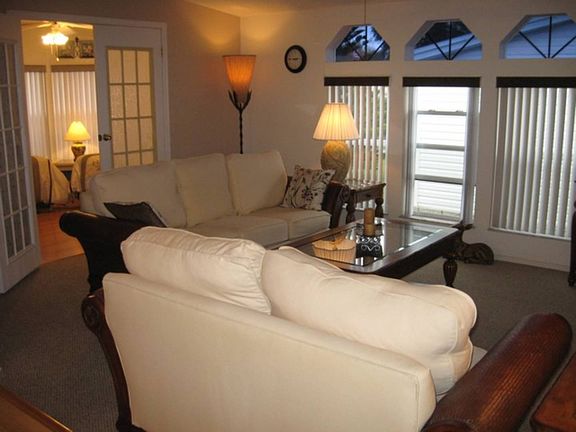 Four Lakes Golf Club is an affordable, award-winning retirement community. It carries on that tradition with only the finest homes, amenities and service that is second to none. Anyone looking for an active retirement community in the central Florida area need look no further. Amenities include: 22,000 sq. ft. full service clubhouse; Four beautiful lakes with marina; Large heated swimming pool; Master whirlpool spa; 18 hole regulation golf course; Billiard and game room; Library & surround sound theater; 24 hour gated security; Exercise room with sauna; Fully equipped crafts room w/ kilns; Putting greens and pro-shop; and Access control gate with attendant. Pets under 40 lbs. allowed. See more information about this and other pre-owned manufactured homes by Googling Renee's Resales. Disclaimer: All listing information is deemed reliable but not guaranteed and should be independently verified through personal inspection by appropriate professionals. Renee's Resales LLC cannot guarantee or warrant the accuracy of this information or condition of this property. The buyer assumes full responsibility for obtaining all current rates of lot rent, fees, or pass-on costs associated with the community, park, or home from the community/park manager. Renee's Resales LLC is not responsible for quoting of said fees.