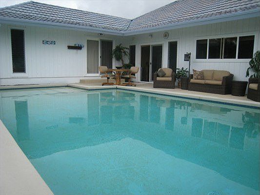Executive home in HILO located in Komohana Gardens; a well-designed, established neighborhood minutes to shopping, the University and Hospital. Fenced backyard, gorgeous swimming pool, easy-to-care for landscaping, clean and neat. This development has "green spaces" built between the back-yard areas of most homes adding a park-like setting and especially privacy to this home. A tiled formal entry greets you as an invitation to either your formal or family wing, both with pool or Mauna Kea views. The kitchen has updated appliances and is centrally located to service both dining and living areas. The single story design with only a couple steps up to your bedroom and utility wing is a fantastic layout. 4 bedrooms/ 2 full baths/ plus a half bath. One bedroom overlooks the swimming pool and could be a den or office. A full house solar water heater was installed in 2011 and the swimming pool is completely off grid using the commercial grade excellence of a Lorenze Solar Pool Pump and Salt water filtration system. Komohana Gardens has underground electric, sidewalks, curb and gutter for enhanced beauty and safer neighborhood activity. This is a rare Hilo town dream-home.