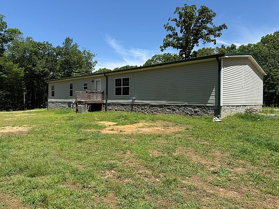2014 doublewide setting on 2 acres in Waverly Tennessee. This home has 4 bedrooms, 2 baths, living room, den, dining room and extra large utility room. There is also a 18 x 27 concrete pad on the property ready to build a shop or install a detached carport. Roof is approx. 2 years old. Home will need a new CHA unit. This home as a permanent Block Foundation