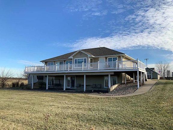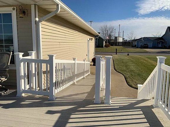This beautiful ranch style home features amazing views from its handicap accessible deck. The deck is made of composite material that needs little to no maintenance. The interior of the home is just as amazing with two floors of living space! The first floor features a welcoming tiled foyer into an open living and dining area with French doors leading out to the deck, breakfast nook, kitchen with custom cherry cabinets (of which several have pull out shelves), two bedrooms, one hall bathroom with jacuzzi tub, a master bedroom and bathroom with two closets and a door that leads out to the deck. The cherry wood continues throughout the upper living area and continues down the open stairway to the lower living area. This also has an open living room with a gas fireplace, French doors leading out to the patio under the deck, oak kitchen and dining area, two bedrooms (one of them has a walk-in-closet) and a hall bathroom. There's also a small room that could be used as a craft room or office. Storage won't be a problem with spacious hall closets up and down. Appliances are included for both kitchens along with the washer and dryer. Gas Forced heat and Central air make this a comfy home year-round. Priced Reduced to $289900
