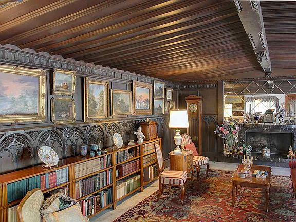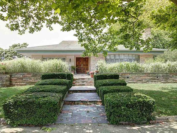 An air of comfortable elegance pervades this California Ranch home of rose marble and brick with its fifty foot terrace, high at the head of Michigan and Pennsylvania Avenues. The common rooms and foyer have the look of an English manor with antique marble floors, marble fireplace, fountain, statuary and dark oak paneling extending to a vaulted living room ceiling. The rear patio of the house is a textbook study in Art Deco highlighted by the thirty foot kitchen and Art Deco baths, a bright garden room with bar and window wall leading to the private rear yard. The library is custom woodworking, floor ceiling shelves, wall desk and sitting area, four large bedrooms and detached two car garage.