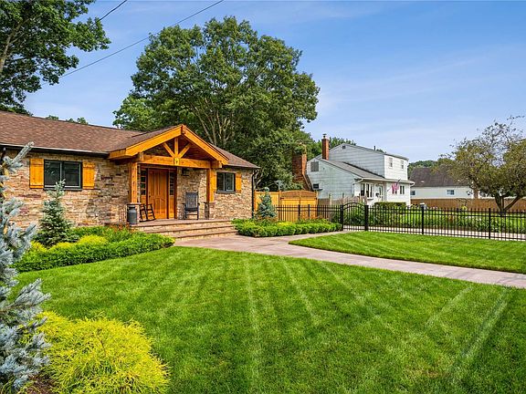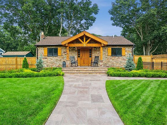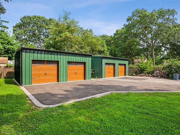 Amazing opportunity to own this 1 of a kind custom built home w/ taxes of only $4700.56!! Home was completely rebuilt in 2019 w/ custom woodwork and stonework you will not see anywhere else! This home is completely custom, custom kitchen w/ brand new appliances (never used), custom woodwork inside & out, outdoor stone kitchen & patio, 2 two car detached garages fully insulated w/ Fujitsu heat & air conditioning, in-ground sprinklers & professionally manicured fully fenced yard w/ PVC & wood fencing, siding is triple dipped cedar shake and imported stone, stunning front porch perfect for relaxing & watching sunsets! 2nd bedroom being used as office/den w/ electric fireplace & antique mantle from Gold Coast estate sale. Basement features tile floors throughout, egress window, custom built Murphy bed, brand new washer and dryer. This home is truly like no other! Whole house generator! Centrally located to highways, beaches, restaurants, air port - everything Long Island has to offer!