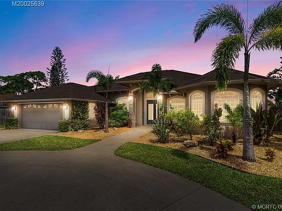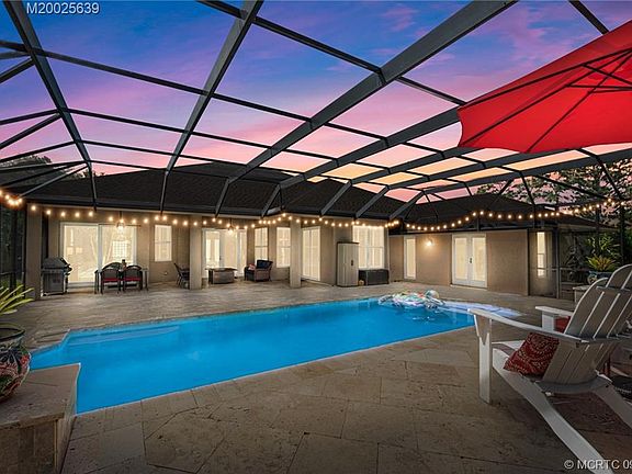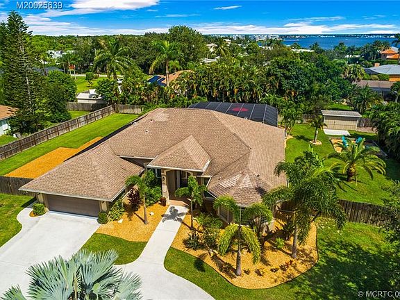 HAVE IT ALL AND NO HOA! Stunning right out of Coastal Living Mag trendy 4/3/2 on 1/2 acre plus lot in the heart of Palm City. We are talking a beachy tropical paradise. Entrance features circular driveway with rich manicured landscaping. Floor plan has perfect flow for family and friends. Every space is inviting and well thought out for Florida living. Coastal style kitchen with sea glass and shell engineered quartz is simply gorgeous and is enhanced by adjoining family room. Master bedroom is captivating with private entrance to the spectacular pool area which was custom designed in 2015. Luxurious master bath is rejuvenating, you will love the soaker tub and extra large shower. This home is designed for personal space as much it is designed for sharing The split plans features 3 additional bedroom and two bath. New impact glass that is hurricane resistant through out The back yard is the creme de la creme- it will beckon you. RV and boat parking and a fantastic garage.